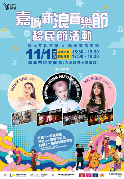 嘉義市政府為促進多元文化交流、展現不同族群音樂藝術美學,特舉辦「2025嘉城新浪音樂節暨移民節」活動,活動邀請來自越南、印尼的異國歌手、新住民及新二代表演團體,以音樂舞蹈的交流形式進行異國音樂文化演出,並設置異國美食文創市集及政令宣導攤位,竭誠邀約市民朋友一同參與多元文化藝術饗宴。