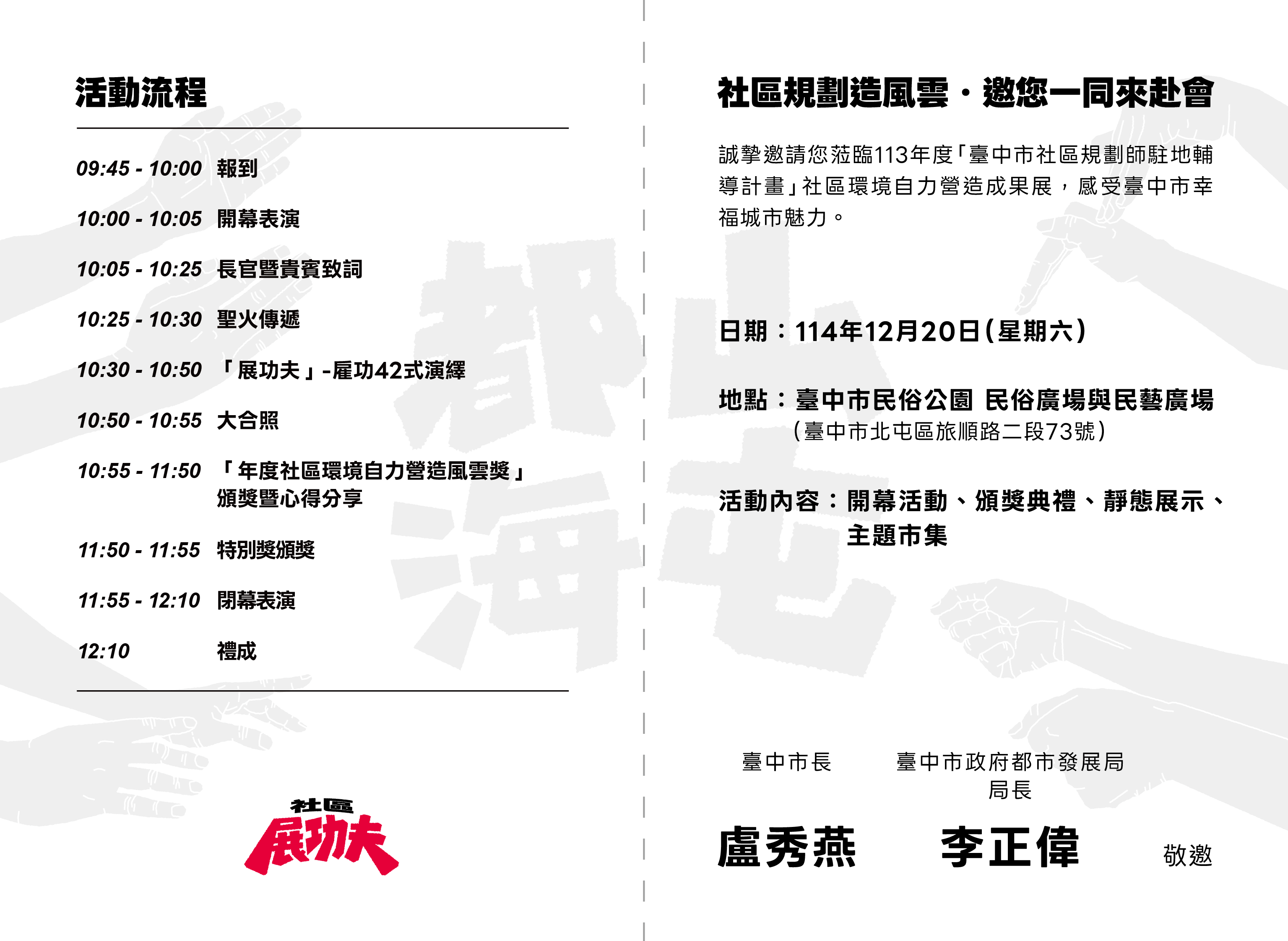 都發局113年度臺中市社區規劃師駐地輔導計畫成果展覽暨推廣案-社區展功夫