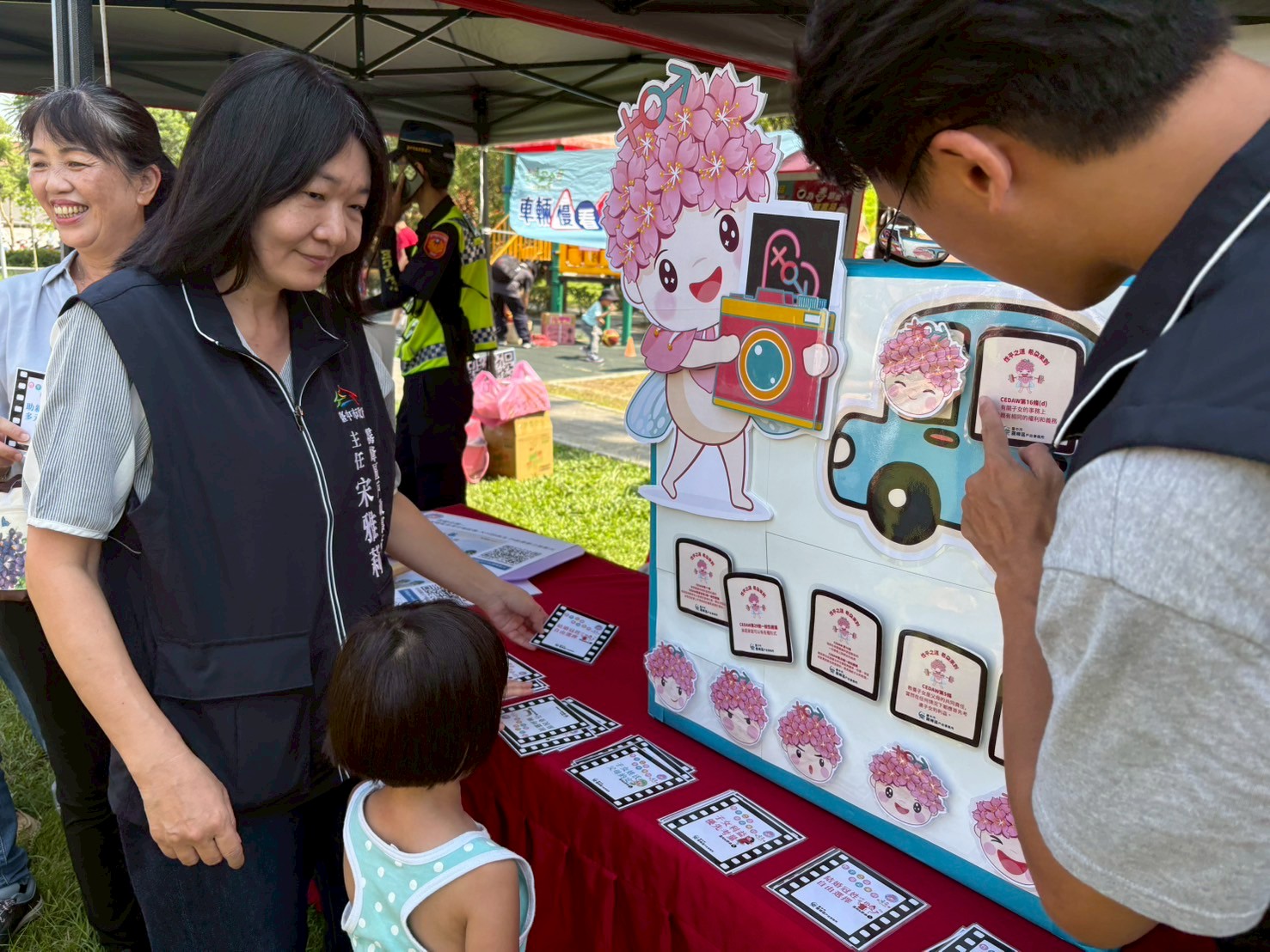 👩🏫主任宋雅莉帶領同仁至阿罩霧公園設攤宣導- CEDAW有獎徵答活動、觀看「大川的燕玉 戶政原夢之旅」短片等活動