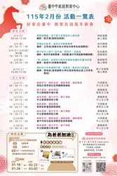 【轉知】臺中市家庭教育中心115年2月份活動,歡迎民眾踴躍報名參加