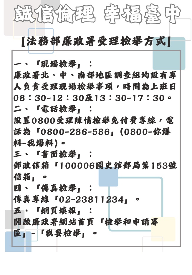 115年「誠信倫理 幸福臺中」社會參與廉政行銷